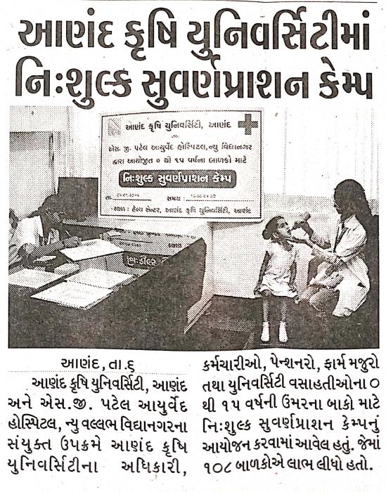 આણંદ કૃષિ યુનિવર્સિટીમાં નિ:શુલ્ક સુવર્ણપ્રાશન કેમ્પ