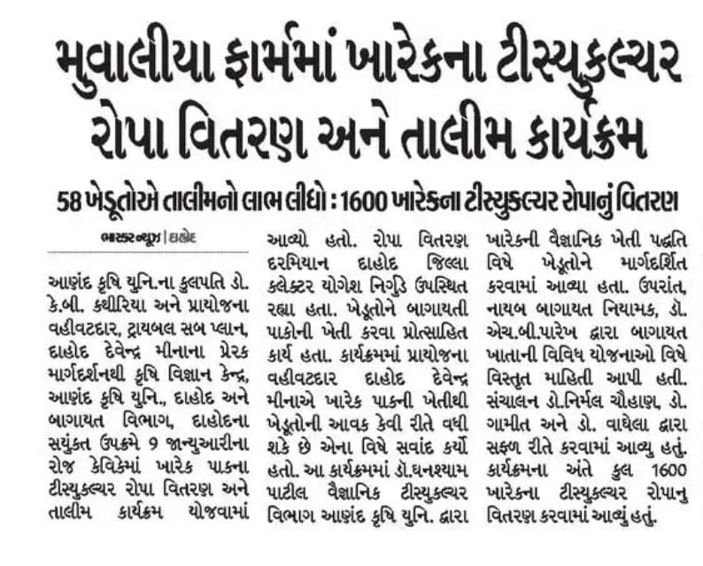 મુવાલીયા ફાર્મમાં ખારેકના ટીસ્યુકલ્ચર રોપા વિતરણ અને તાલીમ કાર્યક્રમ