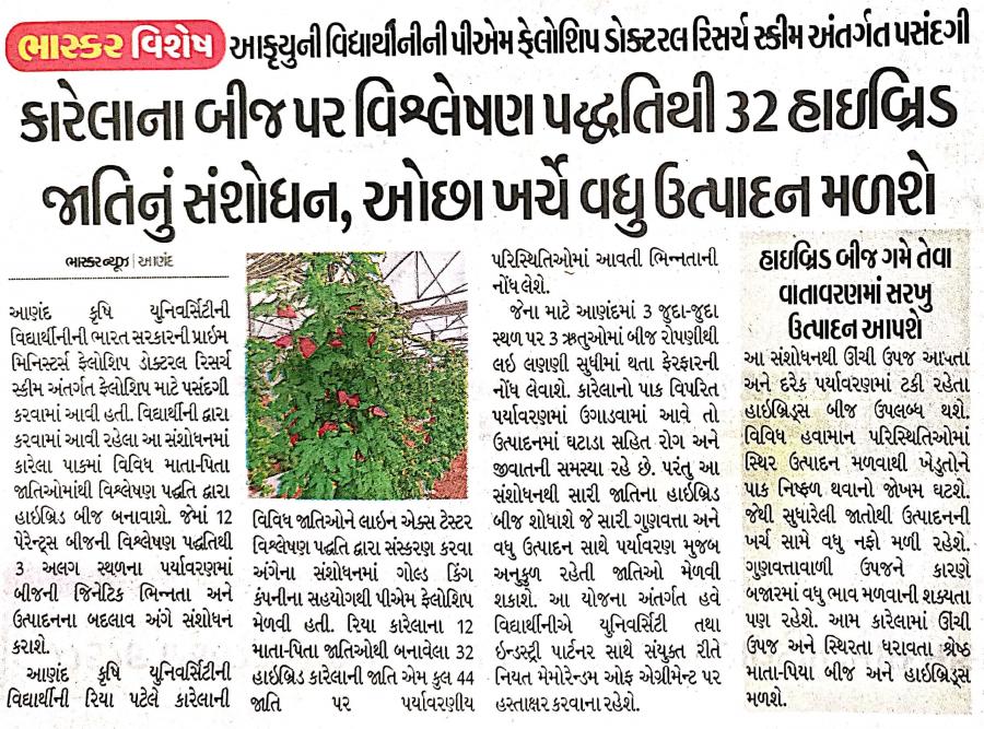 કારેલાના બીજ પર વિશ્લેષણ પદ્ધતિથી ૩૨ હાઇબ્રિડ જાતિનું સંશોધન, ઓછા ખર્ચે વધુ ઉત્પાદન મળશે