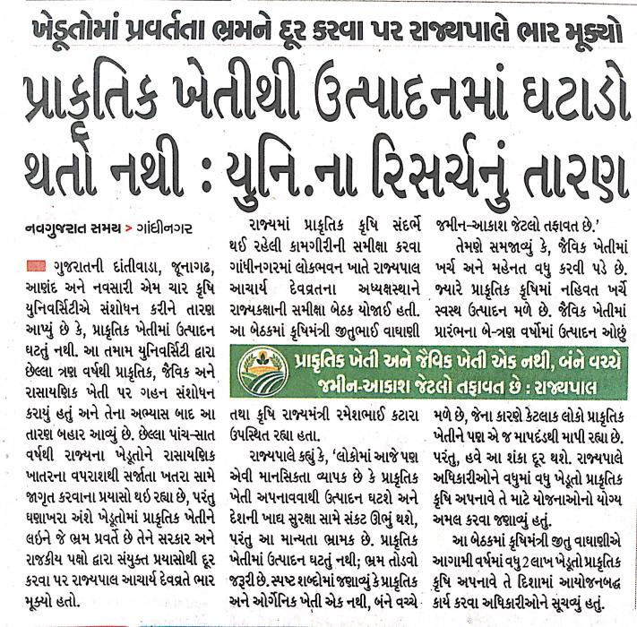પ્રાકૃતિક ખેતીથી ઉત્પાદનમાં ઘટાડો થતો નથી: યુનિ.ના રિસર્ચનું તારણ