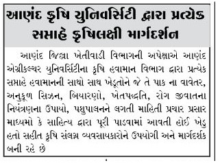 આણંદ કૃષિ યુનિવર્સિટી દ્વારા પ્રત્યેક સપ્તાહે કૃષિલક્ષી માર્ગદર્શન