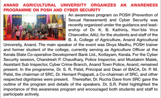 Anand Agricultural University Organizes An Awareness Programme On Posh And Cyber Security