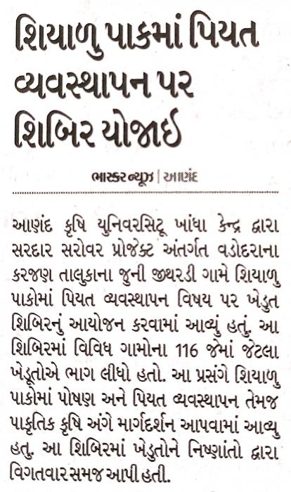 શિયાળુ પાકમાં પિયત વ્યવસ્થાપન પર શિબિર યોજાઈ