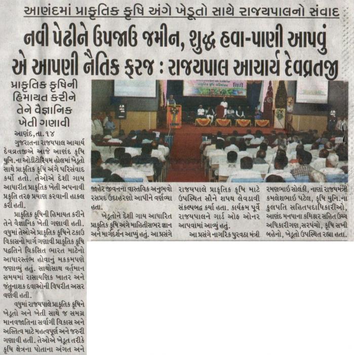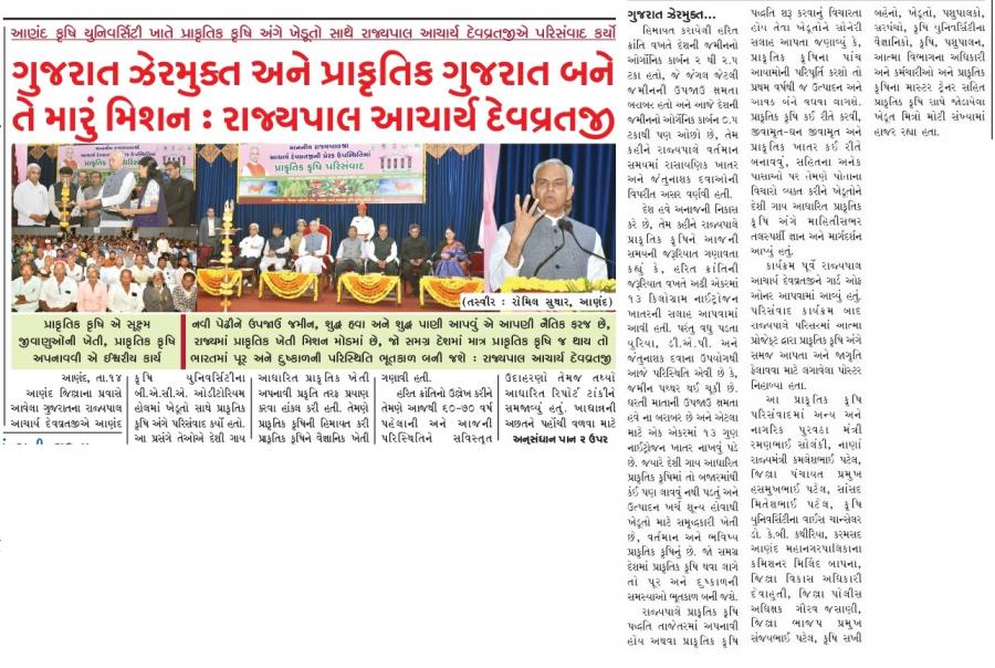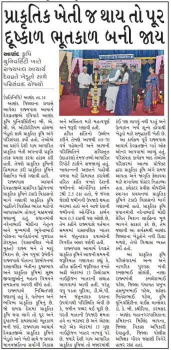 આણંદ કૃષિ યુનિવર્સિટી ખાતે પ્રાકૃતિક કૃષિ અંગે ખેડૂતો સાથે પરિસંવાદ કરતા રાજ્યપાલ આચાર્ય દેવવ્રતજી
