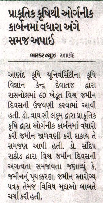 પ્રાકૃતિક કૃષિથી ઓર્ગેનીક કાર્બનમાં વધારા અંગે સમજ અપાઈ