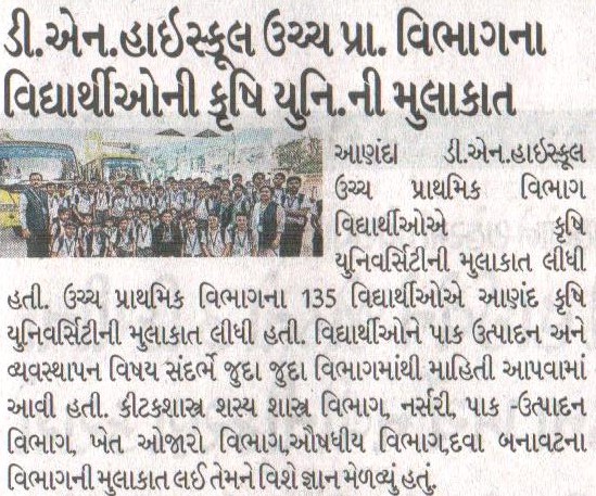 ડી.એન. હાઈસ્કૂલ ઉચ્ચ પ્રા. વિભાગના વિદ્યાર્થીઓની કૃષિ યુનિ. ની મુલાકાત
