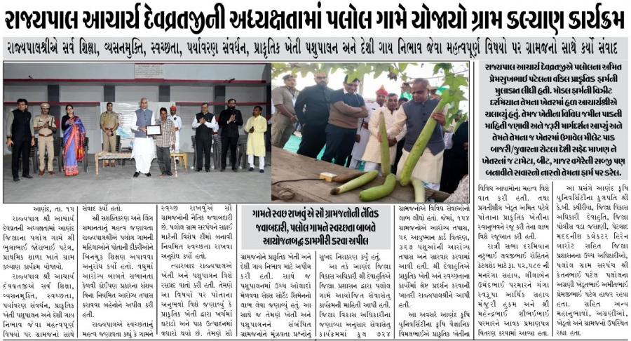 રાજ્યપાલ આચાર્ય દેવવ્રતજીની અધ્યક્ષતામાં પલોલ ગામે યોજાયો ગ્રામ કલ્યાણ કાર્યક્રમ