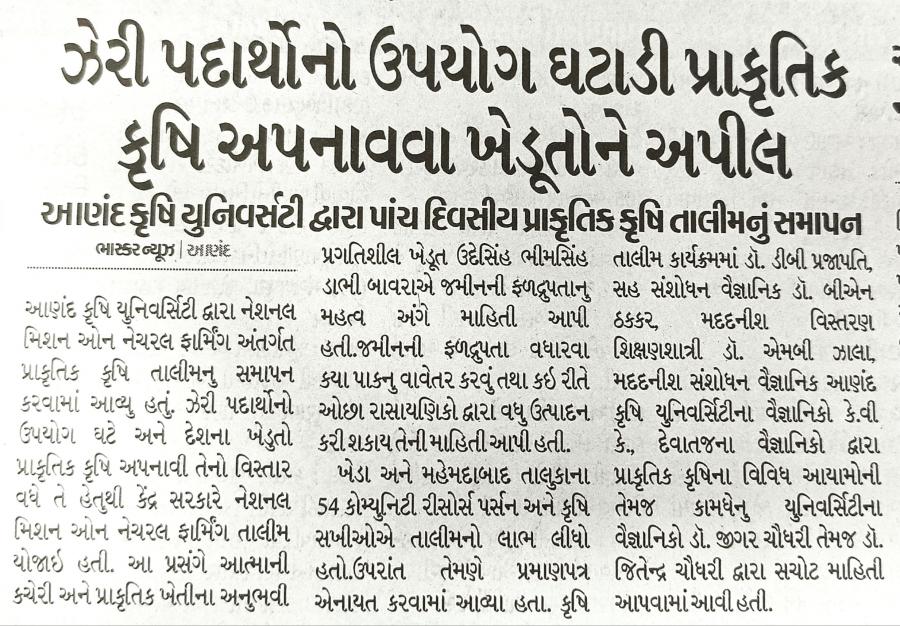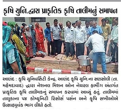 કૃષિ યુનિ.દ્વારા પ્રાકૃતિક કૃષિ તાલીમ નું સમાપન