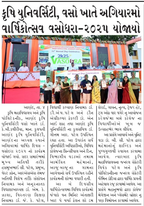 કૃષિ યુનિવર્સિટી, વસો ખાતે અગિયારમો વાર્ષિકોત્સવ વસોધરા-૨૦૨૫ યોજાયો