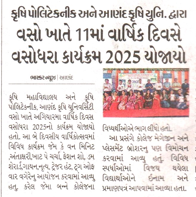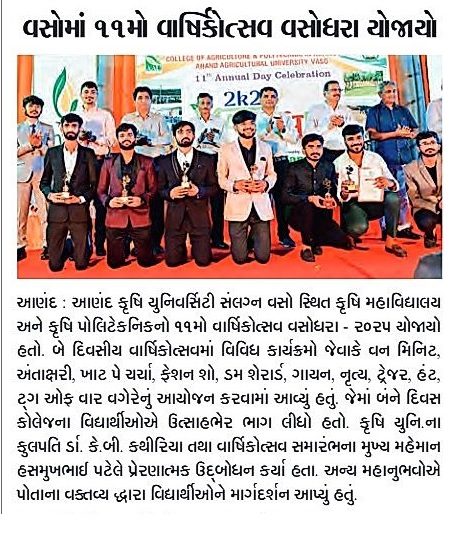 કૃષિ મહાવિદ્યાલય, વસોનો અગિયારમો વાર્ષિકોત્સવ યોજાયો