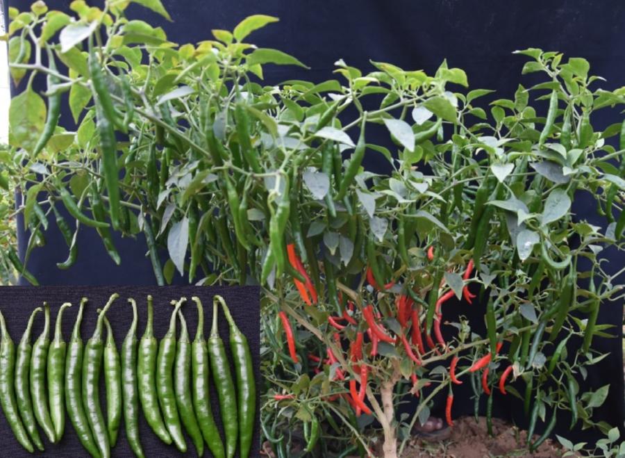 The variety contains higher flavonoid (0.045%), total antioxidant activity (0.276%), ascorbic acid (13.23 mg/100g), acidity (0.275%), total chlorophyll (0.482 mg/g) and capsaicin (0.234%) to the check GVC 121. This variety has lower chilli leaf curl disease, fruit damage by fruit borer and number of thrips/leaf as compared to the check GVC 121.</p>
