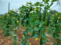 The variety recorded 19.53 and 13.69% higher fruit yield over respective checks GJSG 2 and Pusa Chikni in Gujarat. The variety contains 2.18 % total soluble sugar, 9.36 mg/100g ascorbic acid and 0.97 % crude protein. This variety has less prevalence of cucumber mosaic virus, powdery mildew and downy mildew disease reaction as well as lower infestation of leaf miner and fruit fly as compared to the check Pusa Chikni and GJSG 2. |